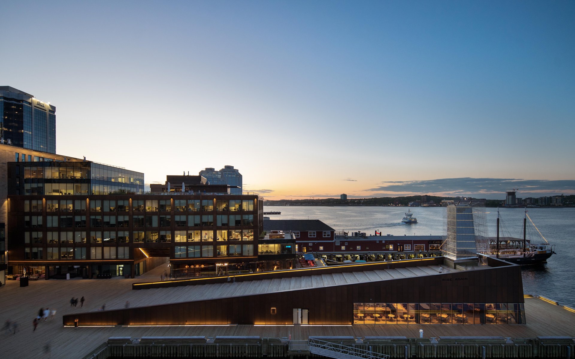 Queen’s Marque features “Born of this Place” design, meaning the art and architecture are shaped by Nova Scotia. Walk the district and look for signature public art and design features like The Stairs, the Tidal Beacon, The Sirens’ Calling, and The Sail.